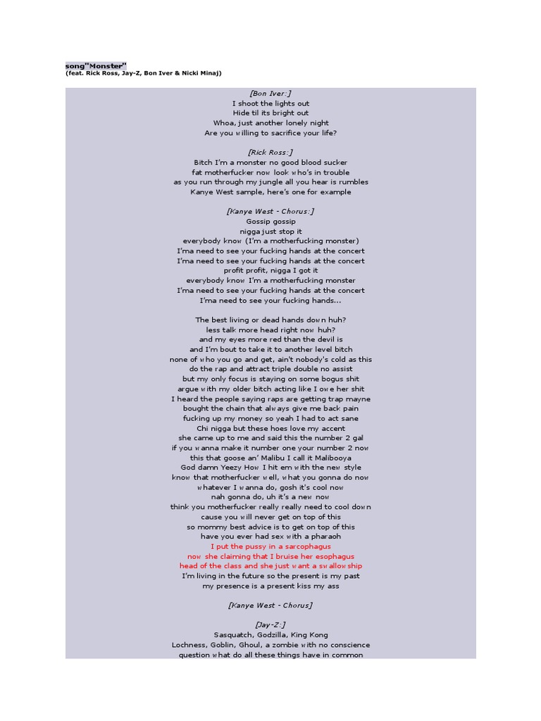 Monster Kanye West Lyrics Nicki Minaj Feat Kanye West 2020 01 23